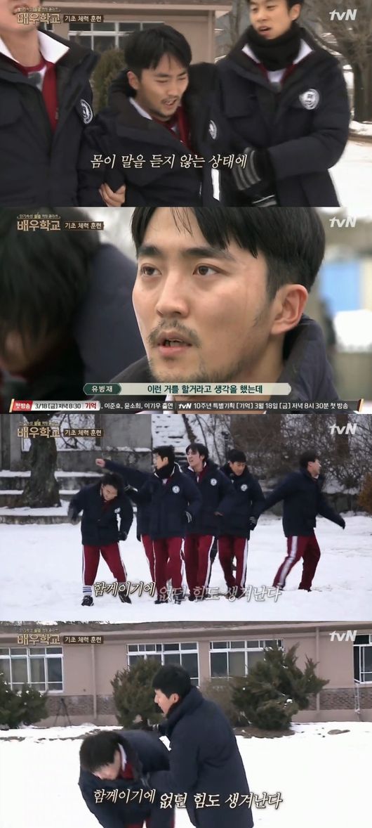 3일 방송된 tvN 예능 프로그램 '배우학교'에서는 혹독한 체력 훈련을 받는 제자들의 모습이 그려졌다.