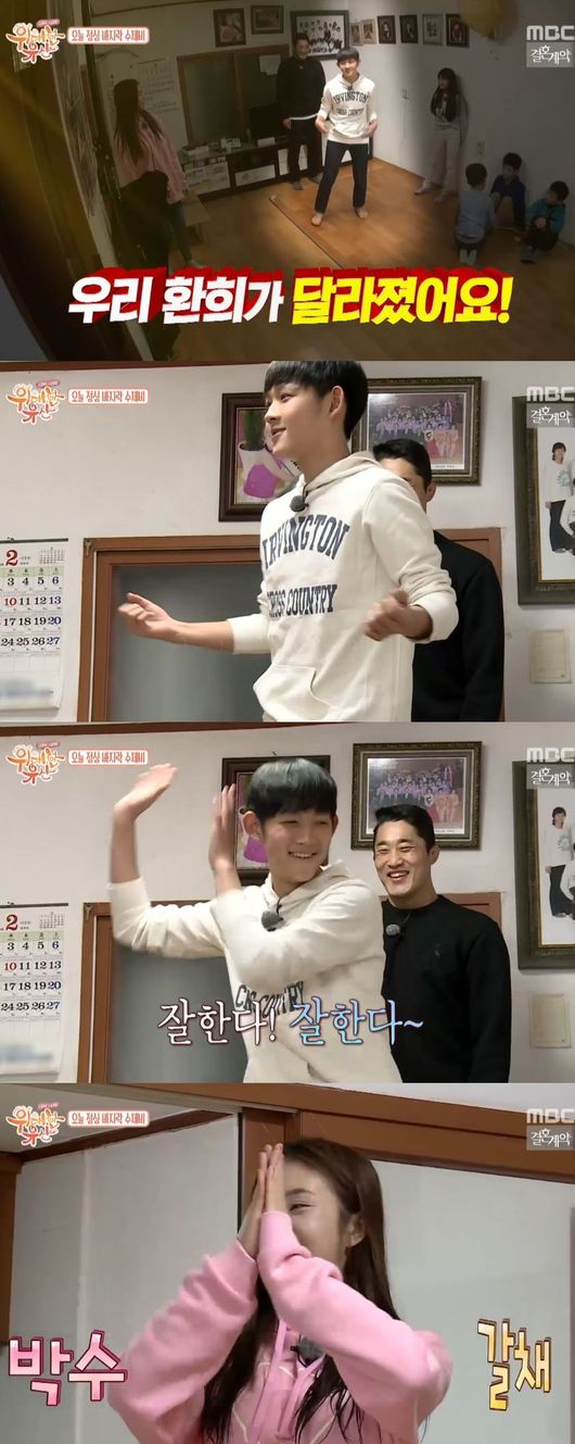 평소 얌전하기로 유명한 환희는 이날 바로 따라해 달라진 모습을 보였다. 차오루의 율동을 바로 따라하고는 다시 '급 점잔' 모드로 들어가 웃음을 유발했다.