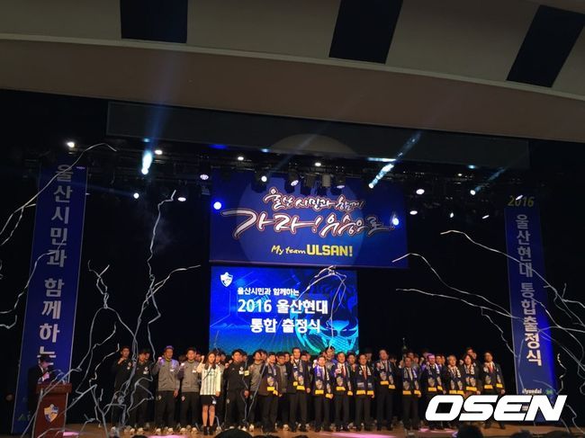 울산 현대가 야심차게 새로운 출발을 알렸다. 울산은 5일 오후 울산시청에서 현대오일방크 2016 K리그 클래식 출정식을 갖고 우승도전을 발표했다. 이 자리에 현대중공업과 울산 구단 관계자들, 선수단을 비롯해 약 400여명의 팬들, 울산 산하 유소년팀 선수들까지 많은 인원이 모였다.