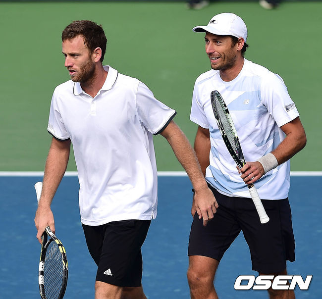 6일 오전 서울 송파구 방이동 올림픽공원 테니스장에서 열린 2016 데이비스컵 아시아-오세아니아 지역 그룹예선 한국과 뉴질랜드의 복식 경기, 뉴질랜드 아르템 시타크와 마이클 비너스가 출전하고 있다.