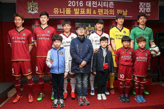 대전은 지난 5일 대전월드컵경기장 락커룸에서 유니폼 발표회를 갖고 팬들 앞에서 2016시즌 유니폼을 첫 공개했다.