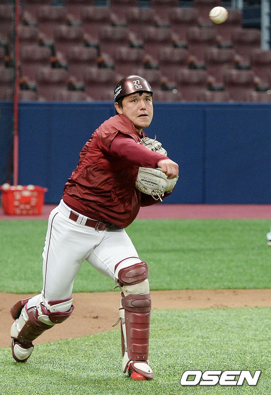 6일 오후 프로야구 넥센 히어로즈가 ‘새 집’ 고척돔에서 첫 공식 훈련을 가졌다. 넥센 박동원이 수비훈련을 하고 있다.