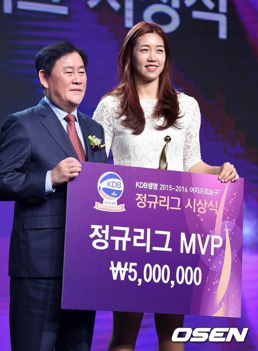 KDB생명 2015-2016 여자프로농구 정규리그 시상식이 여의도 63빌딩 컨벤션 센터에서 개최됐다. 올 시즌 여자프로농구를 빛낸 별들이 모두 한자리에 모였다. 전날까지 우승을 위해 치열하게 다퉜던 선수들이 멋진 정장을 차려입고 등장했다.