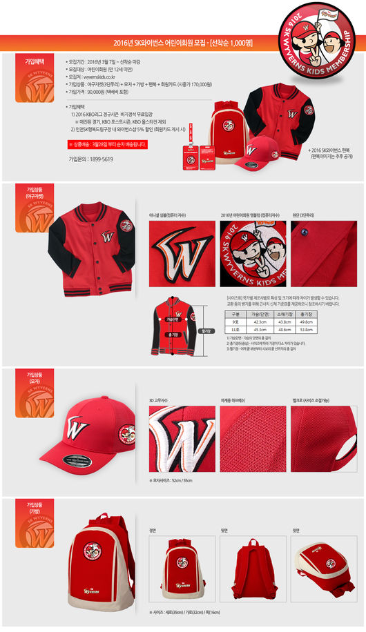 SK와이번스 어린이회원 가입전용 사이트(www.wyvernskids.co.kr)와 온라인 와이번스샵 1호점(www.wyvernsshop.co.kr)에서 가입할 수 있으며, 가입관련 문의 및 상담은 고객센터(1899-5619)로 하면 된다. /skullboy@osen.co.kr