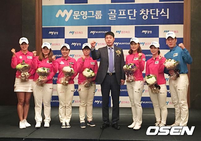문영그룹은 7일 서울 여의도 콘래드 호텔에서 열린 '문영 퀸즈파크 챔피언십 2016 타이틀 스폰서 조인식' 및 '문영그룹 골프단 창단식'에서 김다나(27), 박소연(23), 조정민(21), 주은혜(27), 송민지(28), 황예나(22) 등 6명의 여자 선수와 유일한 남자 선수 오승현(26)으로 구성된 골프팀을 선보였다. 이들은 올 시즌 각종 한국여자프로골프(KLPGA) 투어에 문영그룹 로고를 달고 나선다.