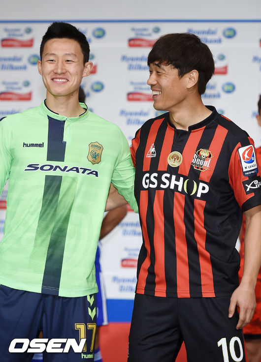 7일 오후 서울시 서대문구 홍은동 그랜드힐튼호텔 그랜드볼룸에서 열린 현대오일뱅크 K리그 클래식 2016 미디어데이 기자회견서 전북 이재성과 서울 박주영이 포토타임을 갖고 있다.