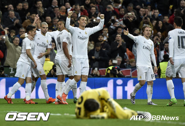 레알 마드리드는 9일(한국시간) 스페인 마드리드 산티아고 베르나베우에서 펼쳐진 2015-2016 유럽축구연맹(UEFA) 챔피언스리그 16강 2차전에서 호날두와 하메스의 연속골에 힘입어 로마를 상대로 2-0 승리를 기록했다.