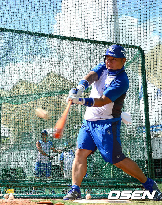 삼성 4번타자 최형우가 시범경기 첫 홈런을 터뜨렸다.