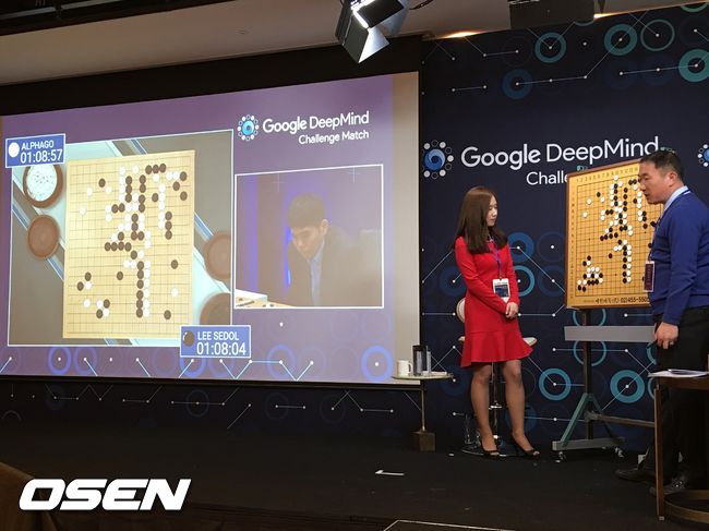 김 9단은 대국 초반, "정말 실망스럽다. 정석을 모른다"고 혹평을 내렸으나 백24수만에 "알파고가 점점 사람처럼 둔다"고 놀라워했다. /letmeout@osen.co.kr