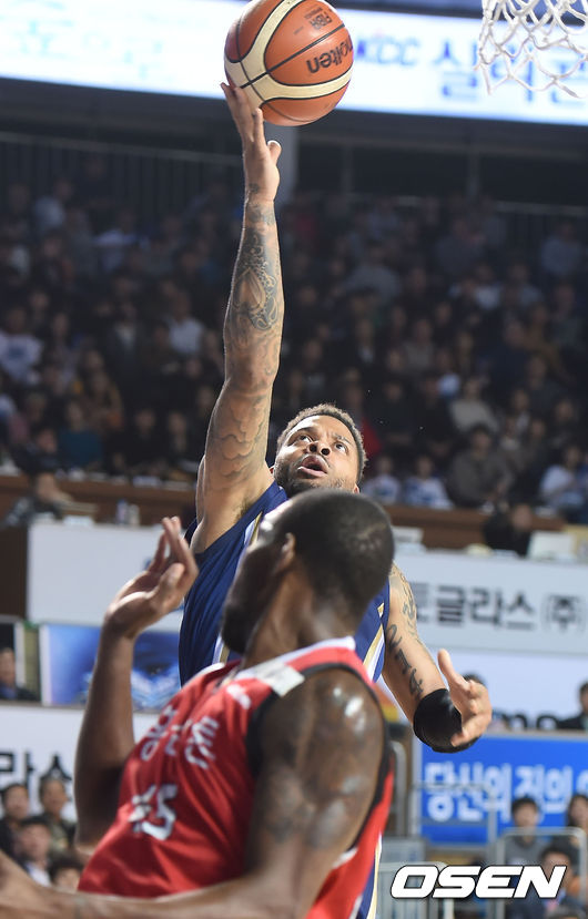 1쿼터 KCC 에밋이 레이업을 하고 있다.