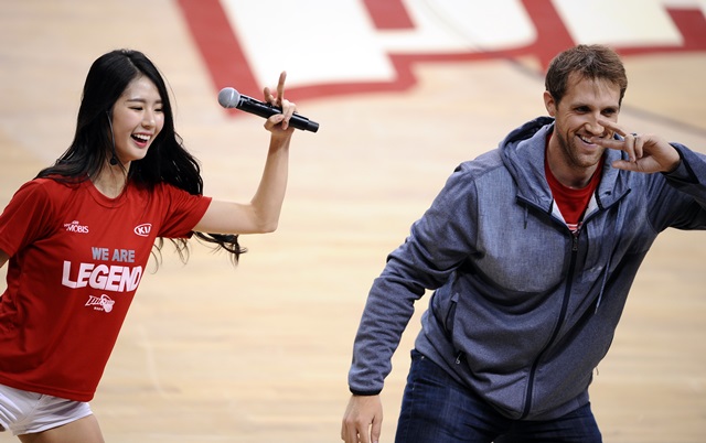 린드블럼은 하프타임 때 치어리더와 함께 익살스런 ‘개다리춤’을 선보이며 동천체육관에 모인 관중들을 웃음바다로 만들었다. 조 감독은 “TV를 보고 있는데 깜짝 놀랐다”고 전했다.