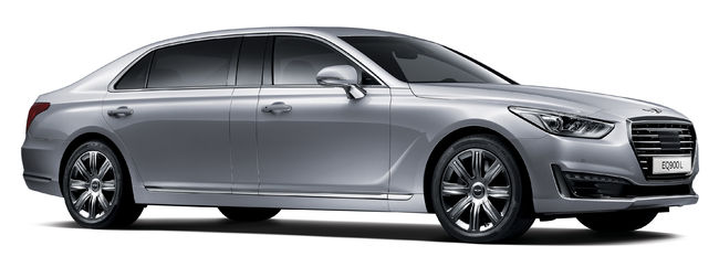 현대자동차가 ‘EQ900’의 전장을 더 늘린 ‘EQ900 리무진’을 출시했다. 제네시스 브랜드로 출시 되는 ‘EQ900 리무진’은 ‘EQ900’ 보다 전장이 290mm가 더 늘어났고, 가격은 1억 5,020만 원이다. 5.0리터 8기통 가솔린 엔진을 쓰며 상시 사륜구동(AWD) 시스템이 갖춰져 있다. 말 그대로 초대형 럭셔리 세단이다.