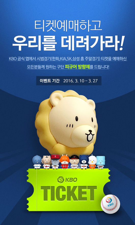 KBO 공식어플리케이션(이하 ‘KBO앱’)이 2016 KBO 시범경기 예매 이벤트를 실시한다.