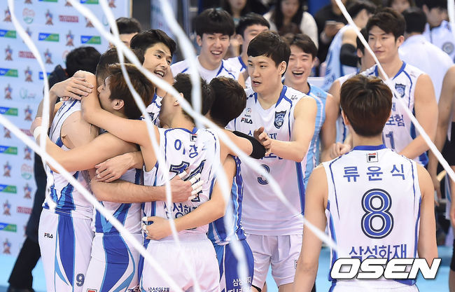 승리를 거둔 삼성화재 선수단이 기뻐하고 있다. / youngrae@osen.co.kr
