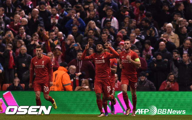 리버풀은 11일(이하 한국시간) 새벽 영국 리버풀 안필드서 열린 2015-2016 유럽축구연맹 유로파리그 16강 1차전 홈경기서 전반 스터리지의 페널티킥 선제 결승골과 후반 피르미누의 추가골에 힘입어 맨유를 2-0을 물리쳤다. 이로써 리버풀은 오는 18일 가벼운 발걸음으로 맨유 원정길에 오르게 됐다.