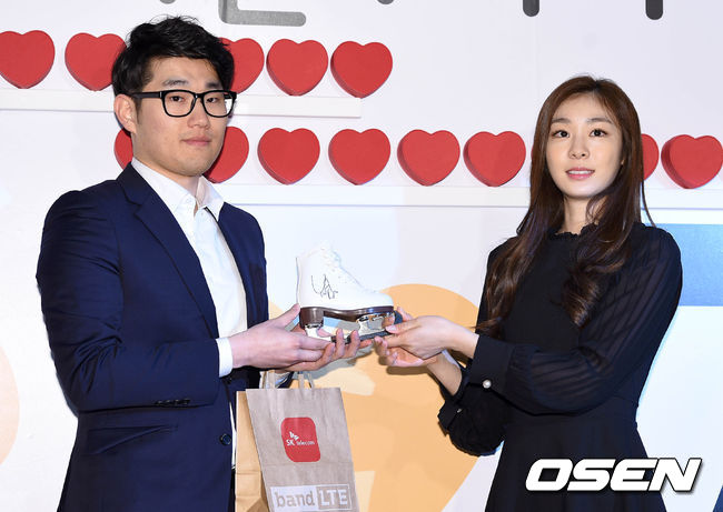[사진] SK텔레콤 갤럭시 S7·S7 엣지 개통행사에 참석한 김연아(오른쪽)가 1호 개통자 이건희씨와 포즈를 취하고 있다. /이대선 기자 sunday@osen.co.kr