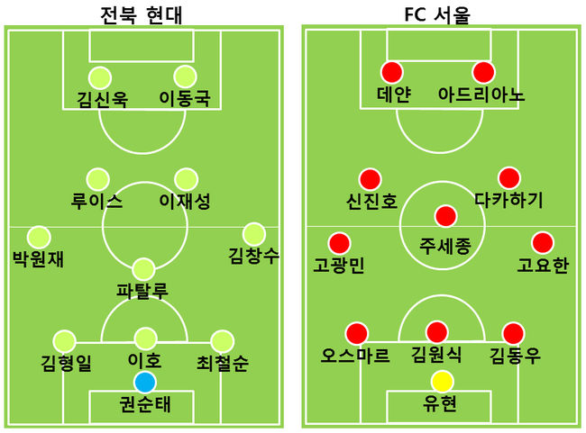 전북이 변칙 카드를 꺼낸 것과 달리 서울은 익숙함을 선택했다. 서울은 AFC 챔피언스리그 조별리그 2경기와 같은 포메이션과 동일한 선발 명단을 들고 나왔다. 그동안 끌어 올린 조직력으로 전북을 넘겠다는 의도였다.