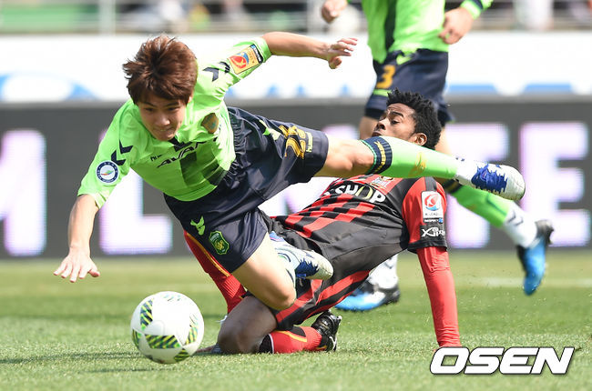전북의 공격이 날카로워진 건 전반 막판 이후다. 전반 35분 루이스의 패스를 받은 김창수가 박스 오른쪽으로 날카롭게 침투했고, 전반 42분에는 김창수가 올린 크로스를 김신욱이 헤딩으로 연결해 골문을 위협했다.