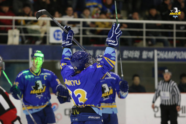 잠시 숨을 고른 한라는 2피리어드서 맷 달튼의 선방을 시작으로 공격이 불타올랐다. 한라는 2피리어드서 박우상, 박진규 등이 골을 터트리며 프리블레이즈에 완승을 챙겼다. / 10bird@osen.co.kr