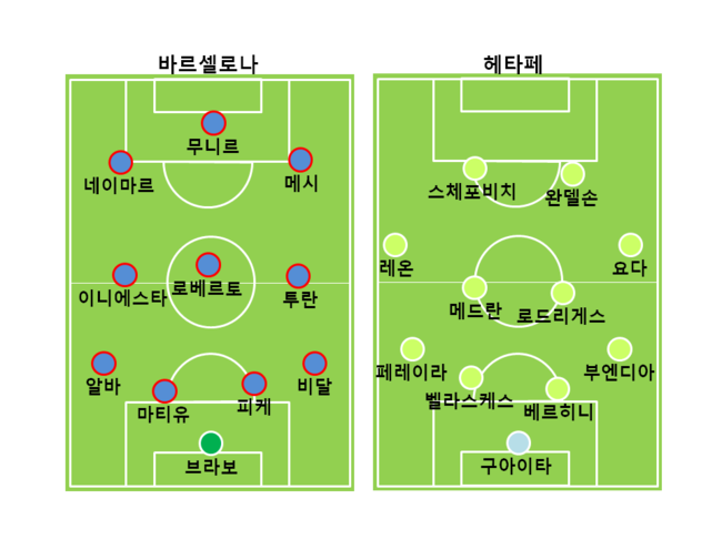 바르사는 전반 31분 문전 혼전 상황서 피케의 슈팅이 골대를 맞히며 아쉬움을 삼켰다. 바르사는 1분 뒤 기어코 추가골을 터뜨렸다. 상대 배후를 찌르는 메시의 침투 패스가 시발점이었다. 네이마르가 쇄도해 오른발로 밀어넣으며 3-0으로 리드했다.