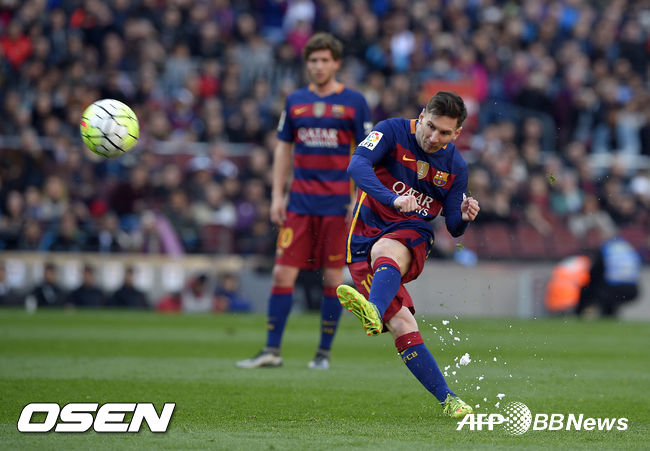 메시는 2분 뒤 네이마르가 얻어낸 페널티킥 키커로 나섰지만 골키퍼 선방에 막혔다. 곧바로 아쉬움을 달랬다. 전반 19분 이니에스타의 침투 패스를 받아 절묘한 논스톱 크로스로 연결, 무니르의 헤딩 추가골을 도왔다.
