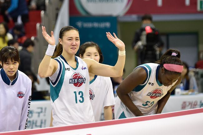 KEB하나은행의 주장 김정은은 무려 11년 만에 처음으로 챔프전에 오르는 기쁨을 누렸다. 15점 6리바운드 1스틸 3굿디펜스를 기록하며 알토란 활약을 펼쳤다. 그간 소속팀이 줄곧 하위권에 머문 터라 정상 문턱을 밟아보지 못했던 그는 이날 챔프전행이 확정되자 뜨거운 눈물을 쏟아냈다.