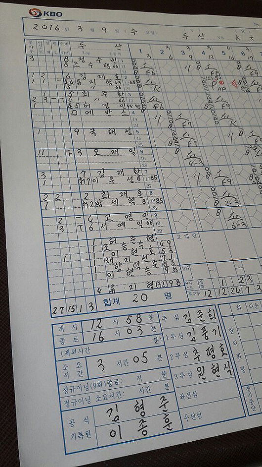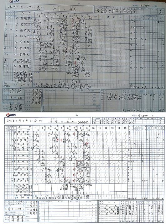 KBO 공식 기록원들은 지난 8일부터 열린 프로야구 시범경기를 시작으로 모든 공식 기록지에 선수명과 야구 용어를 한글로 표기하기 시작했다. 지금까지는 외국인 선수나 한글 이름을 제외한 선수들의 이름을 한자로 표시했고 보살, 자살 등 기록 관련 용어들도 한자로 인쇄됐으나 이제는 한글로 모든 표기가 단일화된다.