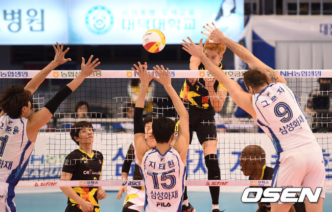 OK저축은행은 시몬이 블로킹 3개와 서브 에이스 1개 포함 25득점을 올렸고, 송명근이 서브 에이스 3개 포함 20득점으로 뒷받침했다. 송희채(8점) 한상길(7점) 박원빈(4점)도 고르게 활약했다. 삼성화재는 그로저가 26득점으로 분전했으나 실책 15개로 흔들리며 끝내 무너졌다. /waw@osen.co.kr
