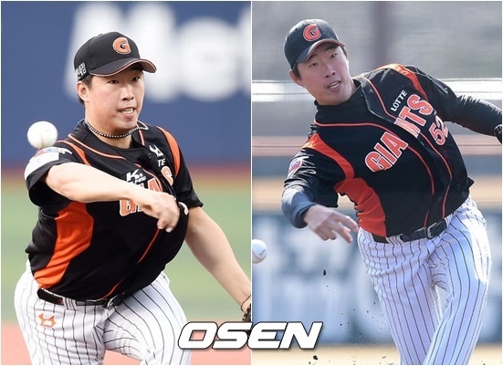[사진] 투구폼 교정 이전인 2015년의 이재곤(왼쪽)-팔 각도를 내린 올해의 이재곤