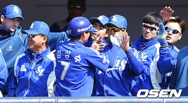 삼성은 16일 수원 케이티 위즈파크에서 열린 ‘2016 타이어뱅크 KBO리그’ kt 위즈와의 경기에서 장단 21안타를 폭발시키며 8-3으로 승리했다. 이로써 삼성은 전날 패배를 설욕하고 시범경기 6승(2패)째를 수확했다. kt는 시범경기 3패(2승 1무)째를 떠안았다.