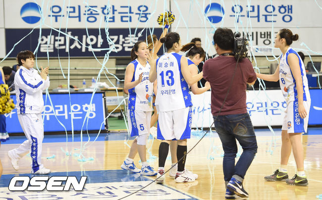 춘천 우리은행은 16일 오후 7시 춘천 호반체육관에서 벌어진 KDB생명 2015-2016 여자프로농구 챔피언결정전 1차전에서 부천 KEB하나은행을 66-51로 크게 이겼다. 우리은행은 17일 같은 장소에서 2연승에 도전한다.