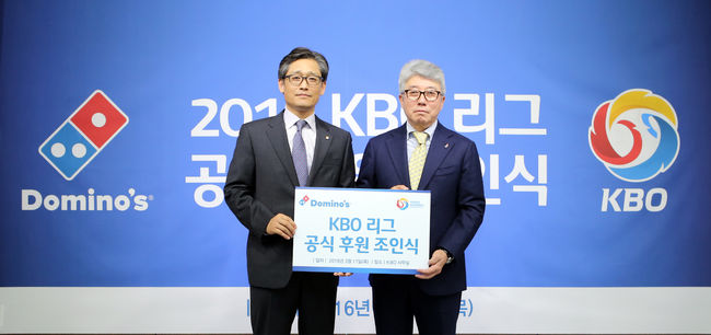 이날 조인식에는 도미노피자 오광현 회장과 KBO 양해영 사무총장이 참석했다. /autunbb@osen.co.kr