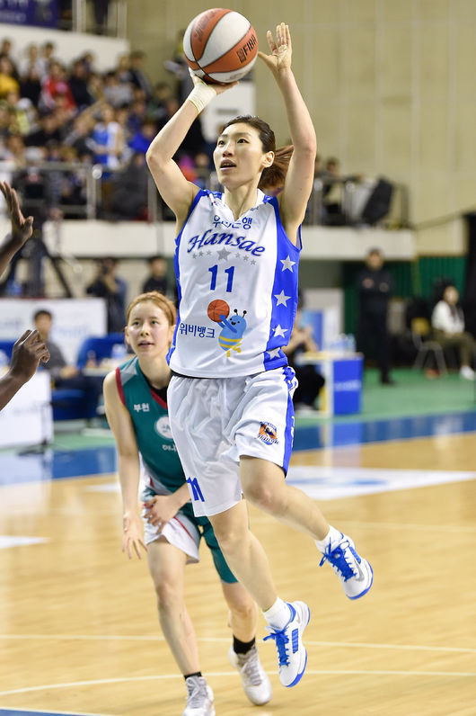 춘천 우리은행은 17일 춘천 호반체육관에서 벌어진 KDB생명 2015-2016 여자프로농구 챔피언결정전 2차전에서 부천 KEB하나를 71-57로 물리쳤다. 2연승을 달린 우리은행은 통합 4연패 달성에 단 1승만 남겼다.