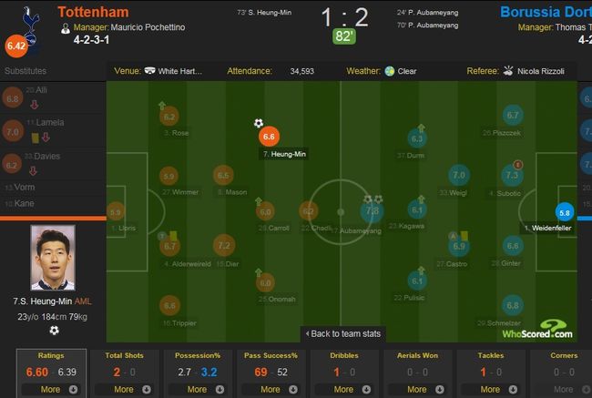 물론 도르트문트 선수들과 비교하면 격차는 더욱 커졌다. 토트넘의 경기력이 워낙 좋지 않았기 때문.