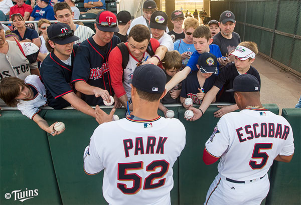 18일 오전 미네소타 구단은 공식 블로그를 통해 전날 경기와 관련된 사진을 공개했는데 박병호의 사진도 다수 포함돼 있었다. 박병호는 많은 사진에서 팬들에게 사인을 해주고 있어 그의 현지 인기를 실감케 했다. 그가 2루타를 치는 모습과 치고 나가 홈을 바라보는 사진도 있었다.