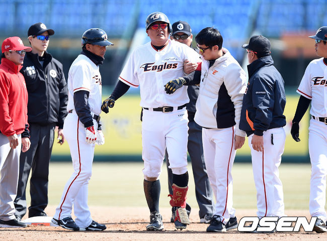 김태균, 17일 SK전 2루 충돌로 교체