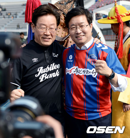 수원FC와 성남FC는 19일 수원종합운동장에서 2016 K리그 클래식 2라운드 맞대결을 펼쳤다. 일명 '깃발더비'다. 발단의 시작은 이재명 성남 시장이다. 내셔널리그와 챌린지를 거쳐 K리그 클래식에 진출한 수원FC가 세간의 관심을 받자 성남의 구단주인 이재명 시장이 새로운 제안을 했다.