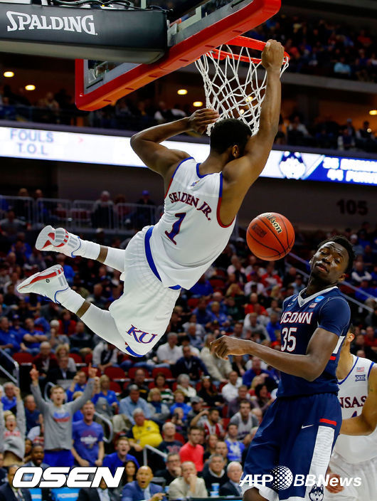 전체 1번 시드 캔자스대학은 20일 미국 펜실베니아주 필라델피아 웰스 파고 센터에서 벌어진 2016 NCAA 토너먼트 32강에서 코네티컷대학을 73-61로 대파했다. 캔자스는 매릴랜드 대 하와이의 승자를 상대로 8강 진출을 다툰다.
