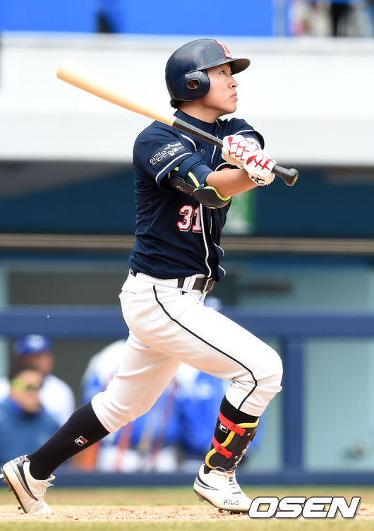 이날 2번 중견수로 선발 출장한 정수빈은 0-2로 뒤진 3회 1사 주자없는 가운데 두 번째 타석에 들어섰고 삼성 선발 정인욱의 2구째를 잡아 당겨 우월 솔로 아치(비거리 115m)로 연결시켰다. /what@osen.co.kr