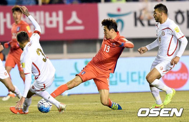 한국은 전반 21분에는 기성용이 좌측면에서 날카로운 크로스를 올렸지만 문전 쇄도한 구자철의 발에 빗맞으며 아쉬움을 삼켰다. 전반 33분엔 구자철의 코너킥을 장현수가 크로스로 연결, 황의조가 박스 정면에서 강력한 슈팅으로 연결했지만 골키퍼에 막혔다.