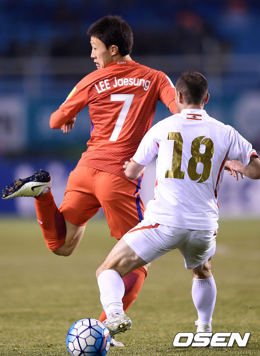 후반 대표팀 이재성이 볼을 흘려 보내고 있다./jpnews@osen.co.kr
