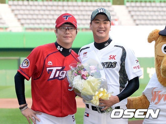 닮은꼴도 많다. 동갑내기인데다 나란히 좌완 투수다. 올 시즌을 마치면 FA(프리 에이전트) 자격을 얻어, 대박 계약이나 해외 진출을 노릴 수 있다. 지난 겨울 연봉을 놓고도 양현종이 7억5000만원을 받자, 김광현은 8억5000만원으로 넘어섰다.
