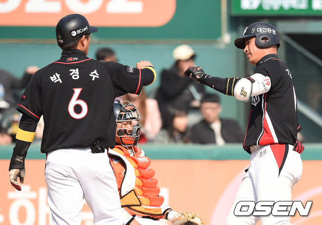 김상현과 김사연이 나란히 5개의 홈런으로 시범경기 공동 1위에 올라있고, 문상철(4개) 마르테·윤요섭(2개) 유한준·박경수(1개) 등 여러 선수들이 너나 할 것 없이 홈런을 폭발 중이다. 지난해 팀 홈런 9위였지만 올해는 리그를 지배할 새로운 대포군단 탄생을 예고하고 있다. /waw@osen.co.kr