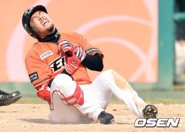 26일 광주-기아 챔피언스 필드에서 열린 KIA와의 시범경기에 앞서 김성근 감독은 "오늘 아침 MRI 진단을 했는데 문제는 없다고 했다. 그러나 붓기가 올라 반깁스를 했다. 아무래도 (4월 1일) 개막은 힘들 것 같다"면서 한숨을 내쉬었다.
