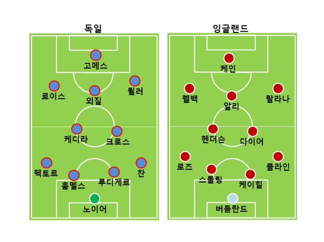 잉글랜드도 곧바로 반격에 나섰다. 후반 16분 코너킥 찬스서 케인의 발이 번뜩였다. 박스 안 페이크 모션으로 수비수 두 명을 따돌린 뒤 지체없는 오른발 슈팅으로 독일의 골네트를 흔들었다.