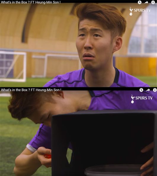 토트넘 홈페이지는 23일(한국시간) 익살스러운 동영상을 게재했다. 손흥민이 안을 들여다볼 수 없는 박스 안에 손을 넣어 어떤 물건인지 맞추는 간단한 게임을 했다. 손흥민은 “먹는 거예요? 살아있어요?”라며 무서운 표정을 지으며 손을 넣는다. 축축한 물체가 손에 잡히자 기겁하는 손흥민의 표정이 웃음을 자아낸다.