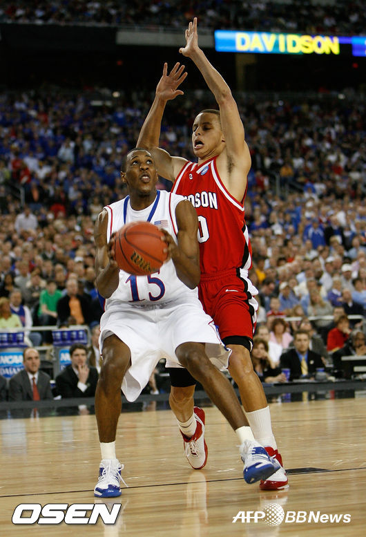 커리의 진정한 시험대는 캔자스와의 8강전이었다. 당시 캔자스는 마리오 챠머스, 러셀 로빈슨, 셰런 콜린스, 데럴 아서, 브랜든 러쉬 등 NBA에 진출한 스타선수들이 즐비했다. 캔자스는 마지막까지 커리를 막지 못해 고전했다. 빌 셀프 감독은 막판에 커리에게 더블팀을 가는 절묘한 작전을 성공시켜 59-57로 겨우 이겼다. 결승전까지 승승장구한 캔자스는 데릭 로즈의 멤피스를 꺾고 우승을 차지한다. 마리오 챠머스는 결승전 연장전을 이끄는 기적의 3점슛으로 유명세를 끈다. 당시만 해도 챠머스가 커리보다 훨씬 높은 평가를 받는 선수였다. 하지만 지금은 상황이 완전히 역전됐다.