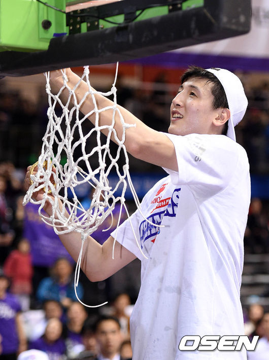오리온 최진수가 골망 커팅을 하고 있다. /sunday@osen.co.kr