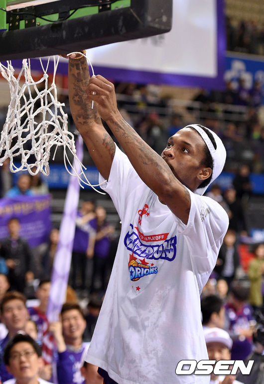 오리온 조 잭슨이 골망 커팅을 하고 있다. /sunday@osen.co.kr