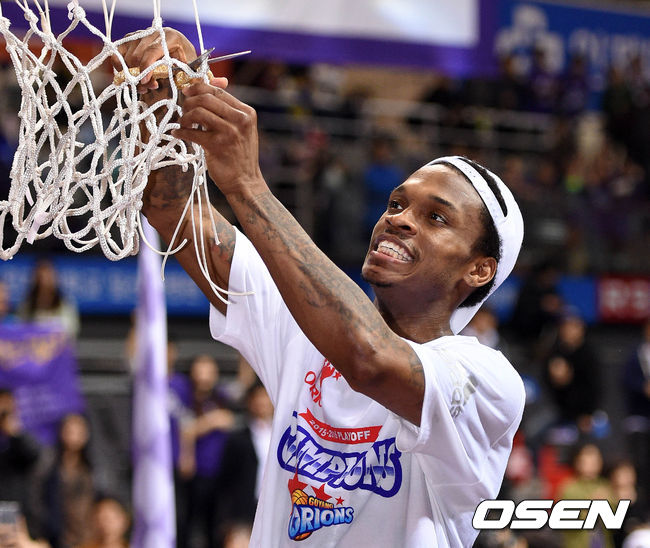 오리온 조 잭슨이 골망 커팅을 하고 있다. /sunday@osen.co.kr
